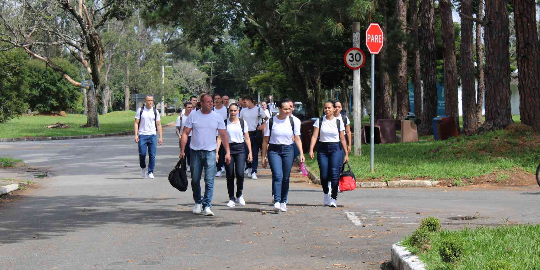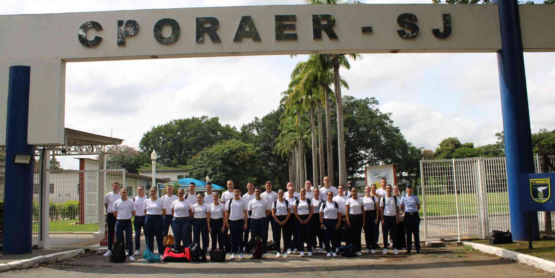 O Primeiro-Tenente Sebastião Marcos Bento de Lima, Comandante do esquadrão responsável pela turma, recebeu os estagiários no portão do CPORAER-SJ, deu-lhes as boas-vindas e os conduziu ao interior da Organização Militar para o início das instruções básicas.